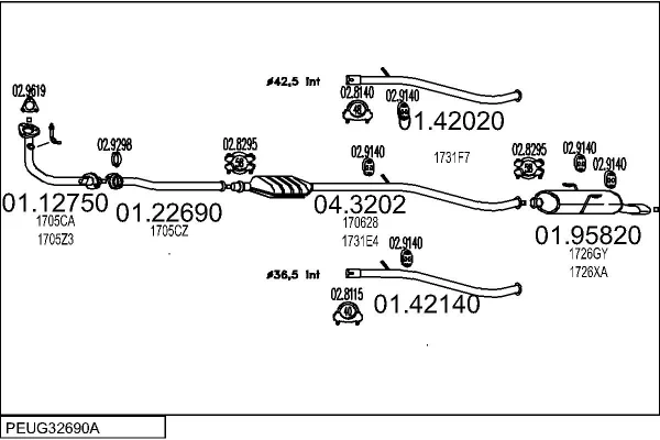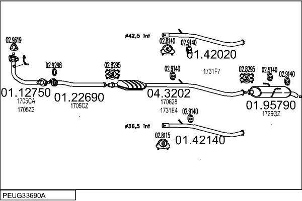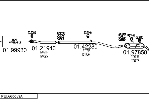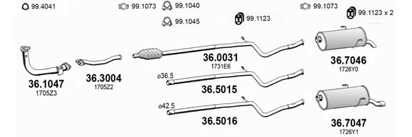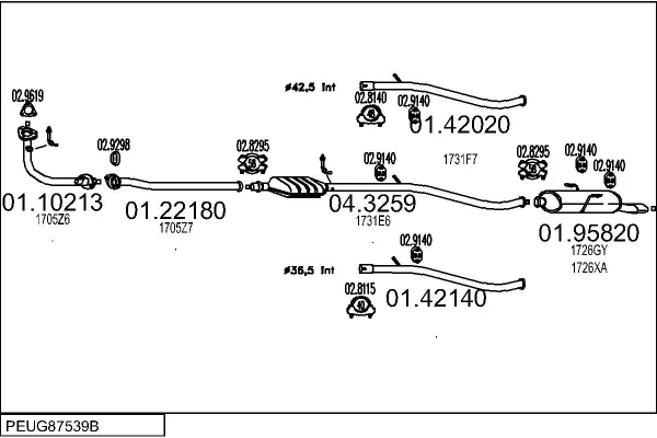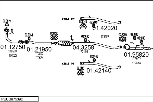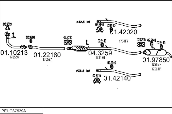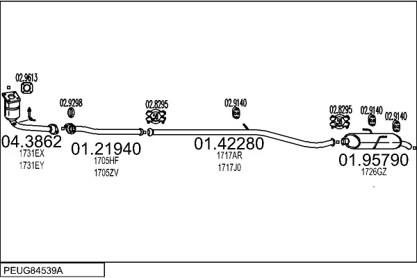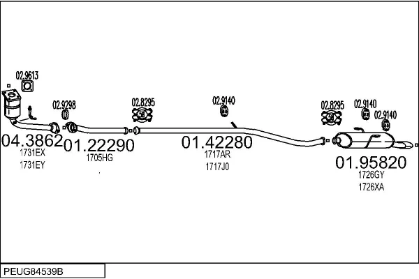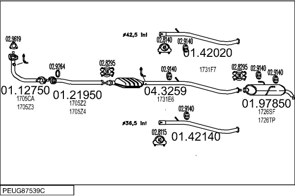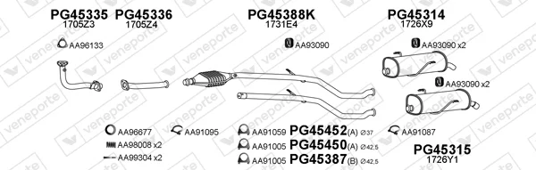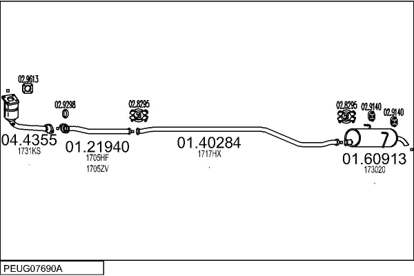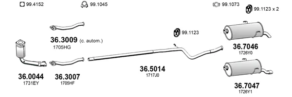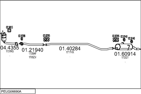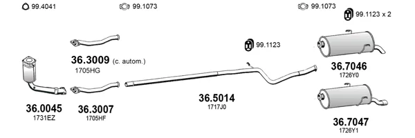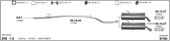 PEUGEOT 206 Šikmá zadní část (2A/C) 1.4 i - Výfukový systém - kompletní od 9/1998 do 12/2012, 1360 ccm, 55 kW, 75 hp, KFW (TU3A), KFW (TU3JP), KFX (TU3JP), Šikmá zadní část