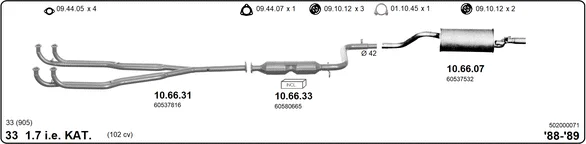 ALFA ROMEO 33 (905_) 1.7 i.e. (905.A3D) - Výfukový systém - kompletní od 9/1988 do 12/1989, 1712 ccm, 77 kW, 105 hp, AR 30558, Šikmá zadní část