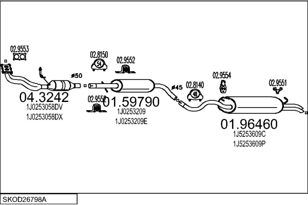 SKODA OCTAVIA I Combi (1U5) 1.6 - Výfukový systém - kompletní od 7/1998 do 12/2007, 1595 ccm, 74 kW, 101 hp, AEH, AKL, kombi