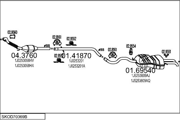 SKODA OCTAVIA I Combi (1U5) 1.9 TDI - Výfukový systém - kompletní od 7/1998 do 3/2010, 1896 ccm, 66 kW, 90 hp, AGR, ALH, kombi