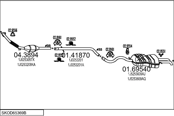 SKODA OCTAVIA I Combi (1U5) 1.9 TDI - Výfukový systém - kompletní od 7/1998 do 1/2006, 1896 ccm, 81 kW, 110 hp, AHF, ASV, kombi