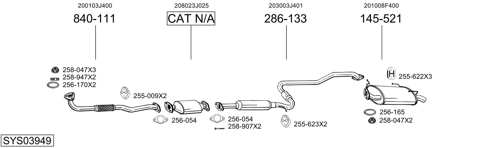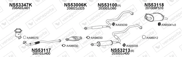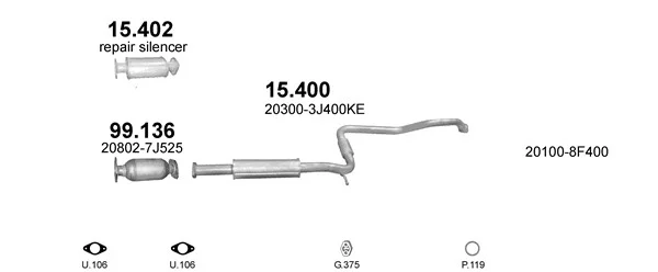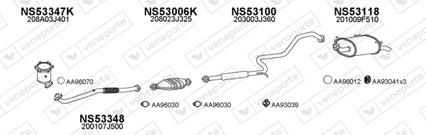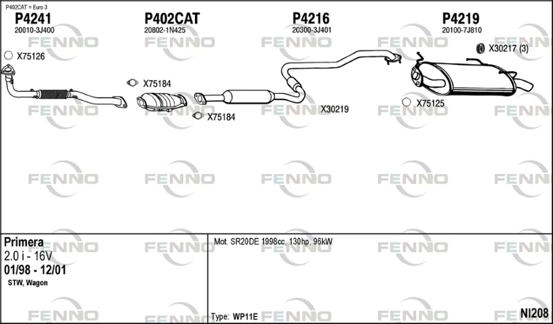 NISSAN PRIMERA Traveller (WP11) 2.0 16V - Výfukový systém - kompletní od 4/1998 do 12/2001, 1998 ccm, 96 kW, 131 hp, SR20DE, kombi