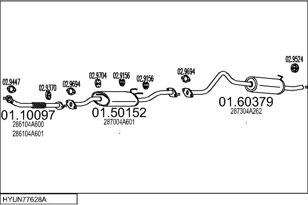 HYUNDAI H-1 / STAREX autobus (A1) 2.5 TD 4WD - Výfukový systém - kompletní od 2/1998 do 4/2004, 2476 ccm, 59 kW, 80 hp, D4BF, autobus