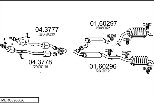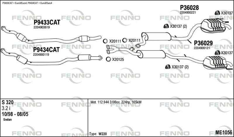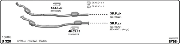 MERCEDES-BENZ S-CLASS (W220, V220) S 320 (220.065, 220.165) - Výfukový systém - kompletní od 10/1998 do 8/2005, 3199 ccm, 165 kW, 224 hp, M 112.944, limuzína