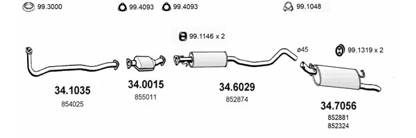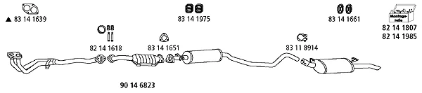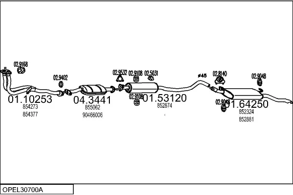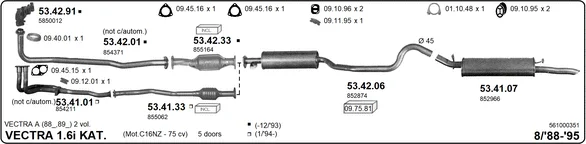 OPEL VECTRA A Šikmá zadní část (J89) 1.6 i Cat (F68, M68) - Výfukový systém - kompletní od 9/1988 do 11/1995, 1598 ccm, 55 kW, 75 hp, C 16 NZ, C 16 NZ2, Šikmá zadní část