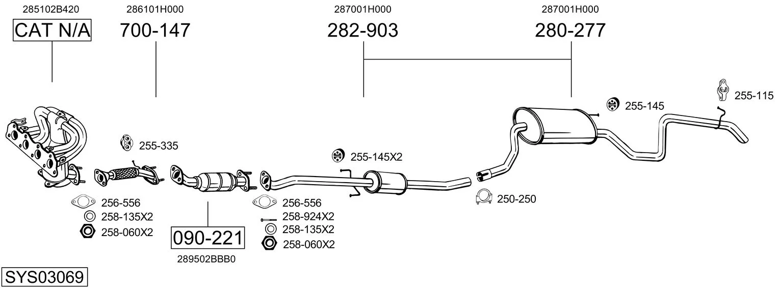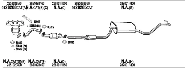 KIA CEE'D Šikmá zadní část (ED) 1.4 - Výfukový systém - kompletní od 12/2006 do 12/2012, 1396 ccm, 77 kW, 105 hp, G4FA, Šikmá zadní část