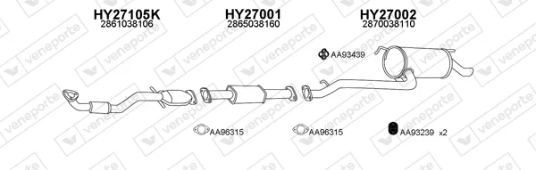 HYUNDAI SONATA IV (EF) 2.0 16V - Výfukový systém - kompletní od 6/1998 do 10/2001, 1997 ccm, 100 kW, 136 hp, G4JP, limuzína