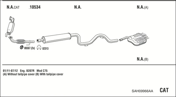 SAAB 9-3 Kabriolet (YS3F) 2.0 t - Výfukový systém - kompletní od 1/2011 do 2/2015, 1998 ccm, 162 kW, 220 hp, A 20 NFT, Kabriolet