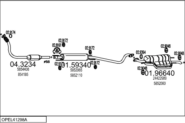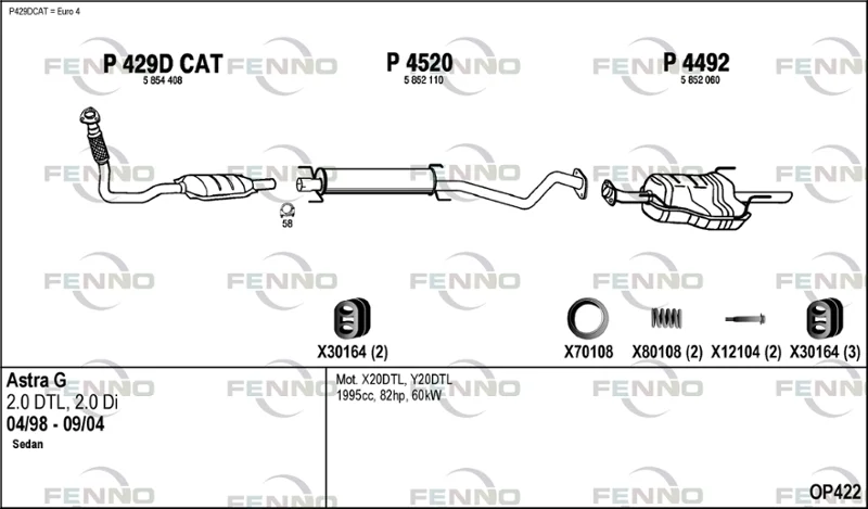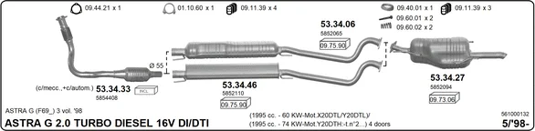 OPEL ASTRA G limuzína (T98) 2.0 DI (F69) - Výfukový systém - kompletní od 9/1998 do 1/2005, 1995 ccm, 60 kW, 82 hp, X 20 DTL, Y 20 DTL, limuzína
